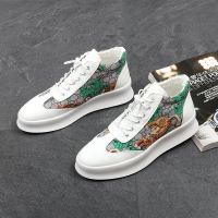 老虎头男鞋韩版潮流高帮鞋迷彩印花休闲板鞋时尚潮男厚底增高鞋秋