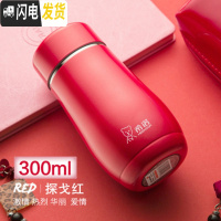 三维工匠保温杯女士可爱小巧便携水杯学生不锈钢茶杯时尚创意简约杯子 探戈红-300[带防伪]