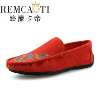 翻毛皮豆豆鞋男发型师刺绣中国风男鞋社会小伙鞋子青少年休闲皮鞋