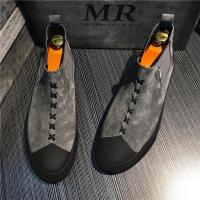 翻毛皮鞋男欧洲站休闲中帮快手红人男鞋精神小伙鞋子真皮英伦潮鞋
