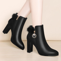 粗跟短靴2017冬季新款韩版百搭中跟女靴英伦风马丁靴高跟加绒冬鞋