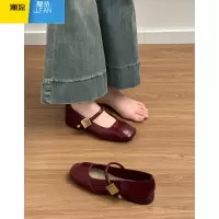 聚范法式复古一字扣玛丽珍鞋女尖头单鞋软皮中跟粗跟酒红色小皮鞋