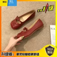 聚范晚晚风温柔鞋子软底单鞋女2024新款夏季女鞋红色小皮鞋复古豆豆鞋