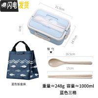 三维工匠小麦秸秆饭盒餐盒带餐具保温便当学生饭盒小号1人便携上班族套装 蓝色+筷勺+饭盒袋