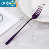 敬平304不锈钢叉子家用餐叉西餐叉水果叉子长柄沙拉甜品叉面叉牛排叉 韩式叉子[紫色]牙签