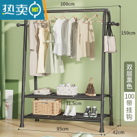 敬平晾衣架落地折叠家用晒衣架阳台卧室挂衣架子室内简易单杆式衣帽架 100双层网+侧勾黑