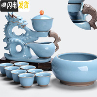 三维工匠全自动茶具套装家用陶瓷简约创意懒人茶具功夫泡茶器整套 3哥窑蓝-福龙旺像吸磁自动茶具