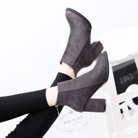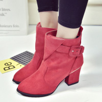 2017秋冬新款马丁靴欧美尖头粗跟短靴中跟裸靴高跟骑士女靴子