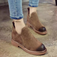 2017擦色马丁靴女英伦风磨砂皮短靴秋单靴平底靴系带女鞋潮