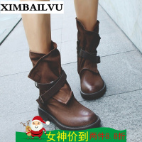 马丁靴女英伦风平底短靴冬季加绒棉靴厚底机车靴真皮中筒靴女鞋子