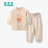 婴儿高腰护肚内衣套装纯棉秋冬6-12个月彩棉宝宝睡衣1-5岁无骨缝