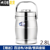 三维工匠不锈钢真空保温饭盒提锅饭桶学生上班族便携便当盒韩国餐盒 鼓型2.8+餐具
