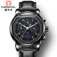瑞士嘉年华Carnival新款手表男全自动机械表 男表多功能真皮带防水复古休闲时尚商务腕表潮流六针皮表带升级8781-1