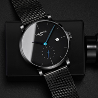 嘉年华Carnival男士石英表 男表简约纤薄学生手表防水真皮表带时尚运动休闲腕表男表进口机芯8708G