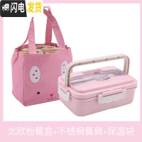 三维工匠创意手提学生饭盒便携可爱健身餐盒上班族食堂分格带盖塑料便当盒 级款粉色+保温袋(送不锈钢餐具)