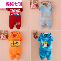 锦铭七玥2018秋款童套装 卡通可爱男女童连帽两件套 韩版抓绒童装卫衣套装