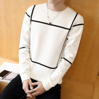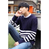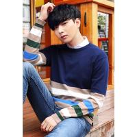2018冬季男士新款长袖毛衣时尚条纹韩版修身圆领针织衫男生外套上衣