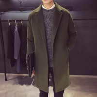 冬季男生修身呢子大衣男装潮流毛呢中长款落肩宽风衣外套
