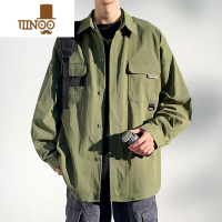 YANXU黑色衬衣男士潮流新款宽松休闲长袖大口袋高街工装衬衫外套