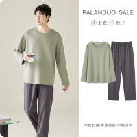 啄木鸟纯棉男士睡衣春秋冬季2025新款圆领长袖长裤简单家居服套装