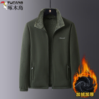 啄木鸟爸爸开衫抓绒卫衣男士秋冬季立领摇粒绒外套中老年加绒上衣