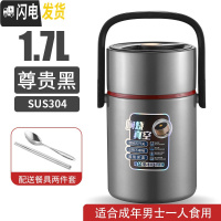 三维工匠304不锈钢超长保温饭盒3多层学生上班族2三层便当盒1人成人便携桶 1.7尊贵黑+送餐具