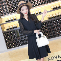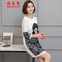 维喜黛大码女装连衣裙2017秋季新款大码胖mm200斤中长款显瘦蕾丝拼接连衣裙打底裙