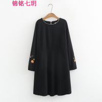 锦铭七玥2018春季200斤大码女装 胖MM文艺风珍珠圆领绣花时尚连衣裙