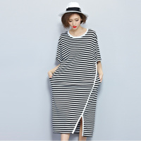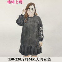 锦铭七玥2018春款韩版大码女装胖MM加肥加大200斤印字母圆领长袖连衣裙