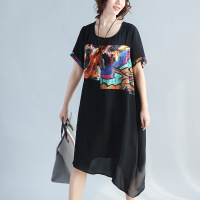 待君归 2018新款大码女装胖mm夏装雪纺遮肚子连衣裙微胖妹妹200斤