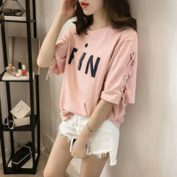 2017特加肥加大码女装200斤胖mm夏装绑带上衣短袖宽松学生t恤女字母印花半袖体恤M-5XL