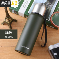 三维工匠304不锈钢真空保温杯子户外便携保温壶男女学生大容量1000 军绿D-750送杯套杯刷