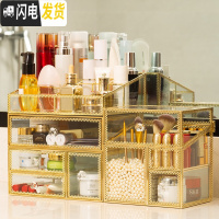 三维工匠复古金色铜边透明玻璃化妆品收纳盒防尘桌面化妆盒欧式非亚克力