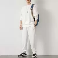 休闲运动卫衣套装男士秋冬新款港风宽松型华夫格圆领卫衣