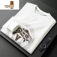 YANXU欧洲站轻秋季薄款烫钻印花圆领白色卫衣男长袖修身外穿t恤男上衣