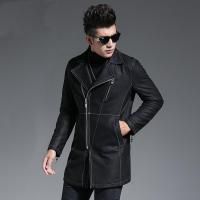 2017冬装新款海宁真皮皮衣西装领真皮棉服男式修身外套欧洲站款黑色