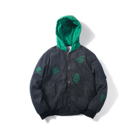 CZS港仔冬季新款青年撞色连帽宽松卡通绣花棉服男士夹克棉衣黑色