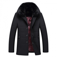 新款中老年男装秋冬款男式加厚可脱卸毛领棉衣男士休闲棉服黑色