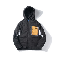 CZS港仔冬季新款青年宽松拼色口袋拼接连帽夹克棉服男士棉衣黑色