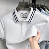 夏季桑蚕丝男士薄款翻领Polo衫商务休闲中年爸爸条纹短袖 T恤