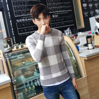 莞馨(wanxin)新款2016秋秋季格子毛衣圆领套头针织衫青年韩版修身线衣男