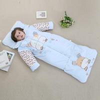 婴儿睡袋秋冬款宝宝儿童睡袋加厚婴幼儿睡袋带袖可拆天蓝色135cm适合0-5岁宝宝
