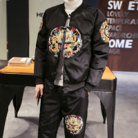 龙袍刺绣套装中国风盘扣棉衣面包服加厚保暖棉服加肥加大码厚外套立领棉衣套装