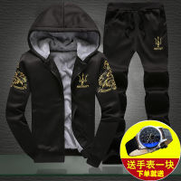 男士冬季加绒加厚外套运动衣服加肥加大胖子休闲装卫衣男装套装冬