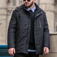 大码男装中老年胖子羽绒服中长款加肥加大爸爸装加厚外套男黑色