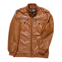 乔拉格加肥加大码男胖子皮衣防风加绒夹克厚外套防寒潮流秋冬新款卡其色