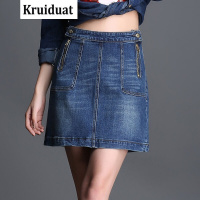 Kruidvat2017春夏拉链牛仔裙子大码牛仔短裙半身裙宽松A字包臀裙子N011KS78