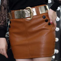 顺崇2018春春时尚女装新款百搭PU皮短裙半身裙包臀裙打钉送腰带