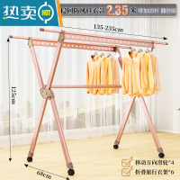 敬平铝合金晾衣架落地折叠室内家用晒衣架阳台室外凉衣杆架晒被子器 加强7代⭐[带加固杆+轮]135-235CM⭐玫瑰金 大