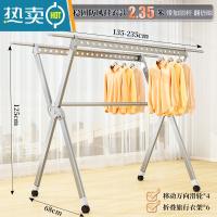 敬平晾衣架落地折叠室内卧室家用伸缩凉衣杆不锈钢室外阳台晒被子器 加强双杆款2.0米☆可伸缩-送32晾晒礼包 ❤晾衣杆
